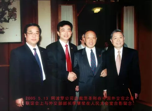 2005年5月,阿波羅公司董事局主席范圣剛應(yīng)邀在人民大會堂出席“中國外交官之春”聯(lián)誼活動,受到外交部長李肇星等接見。阿波羅產(chǎn)品成為:“中國外交官指定饋贈禮品”。